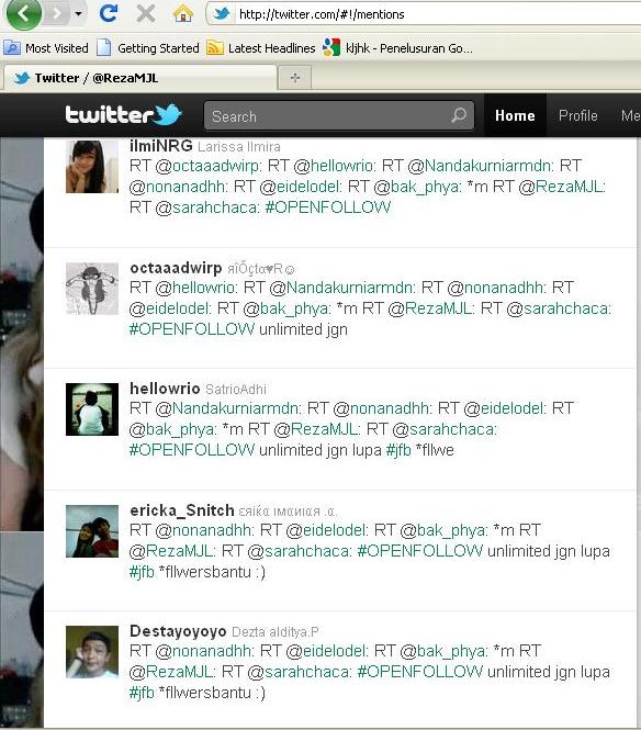 tinggal tunggu mention yg ngeRT tweet open follow kita tadi,